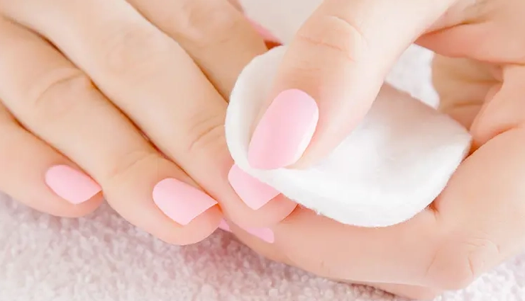 - इसके बाद, कॉटन पैड या पेपर टॉवेल की मदद से नेल पेंट को धीरे-धीरे पोछें।