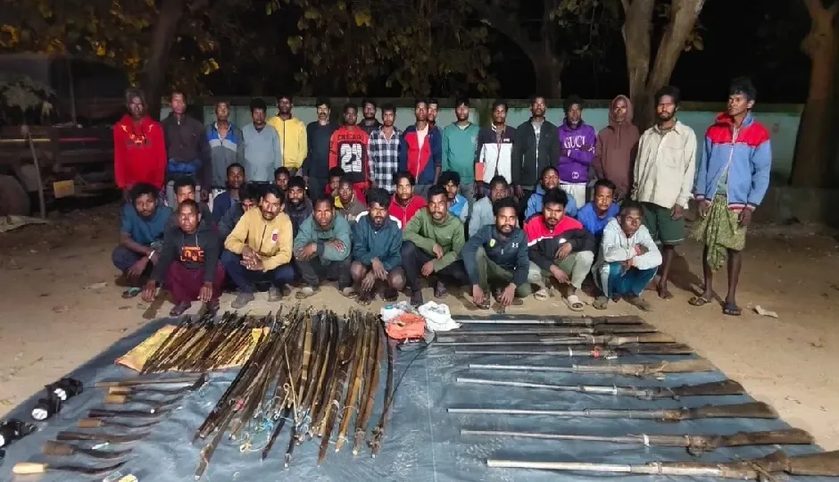 indiatv की खबर के अनुसार, गिरफ्तार शिकारियों के पास से भारी मात्रा में हथियार और विस्फोटक सामग्री मिली। जब्त किए गए सामान में 9 देसी बंदूकें, 20 धनुष, कई धारदार हथियार, विस्फोटक और शिकार में इस्तेमाल होने वाले उपकरण शामिल थे। इससे साफ है कि जंगल में बड़े पैमाने पर शिकार की योजना बनाई गई थी।