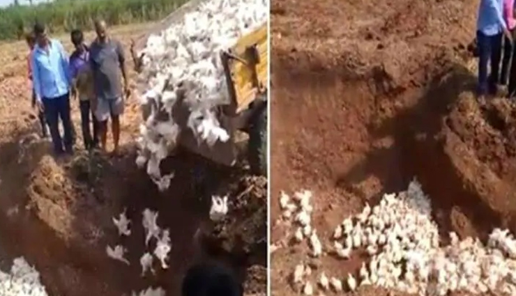 कोरोना वायरस के खौफ से लोगों ने चिकन-मटन खाना बंद कर दिया है। जिसके कारण मुर्गियों की कीमतों में भारी गिरावट आई है। मुर्गियों की कीमतों में आई भारी गिरावट के चलते एक पोल्ट्री फार्म का मालिक इतना बौखला गया कि उसने 6 हजार मुर्गियों को जिंदा गाड़ दिया। ‘द न्यूज मिनट’ की रिपोर्ट के मुताबिक, सोमवार को एक पोल्ट्री फार्म के मालिक नजीर अहमद मकंदर ने गोकक के नुलसोर में तकरीबन 6 हजार मुर्गियों को जिंदा गड्ढे में दबा दिया। उन्होंने कहा कि पहले मुर्गियां 50 से 70 रुपये प्रति किलो बिक रही थी। लेकिन अब इनकी कीमतों में इतनी गिरावट आ गई है कि वे 5-10 रुपये किलों में बेची जा रही हैं।